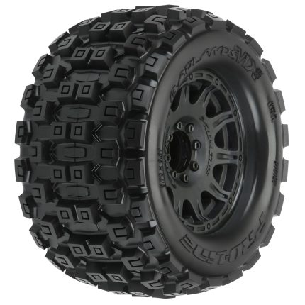 1/8 Badlands MX38 F/R 3.8″ MT Tires Mounted 17mm Blk Raid (2