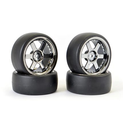 FASTRAX 1/10 (4) DRIFT D1 TYRE w/3MM 6-SPOKE WHEEL- BK CHROME