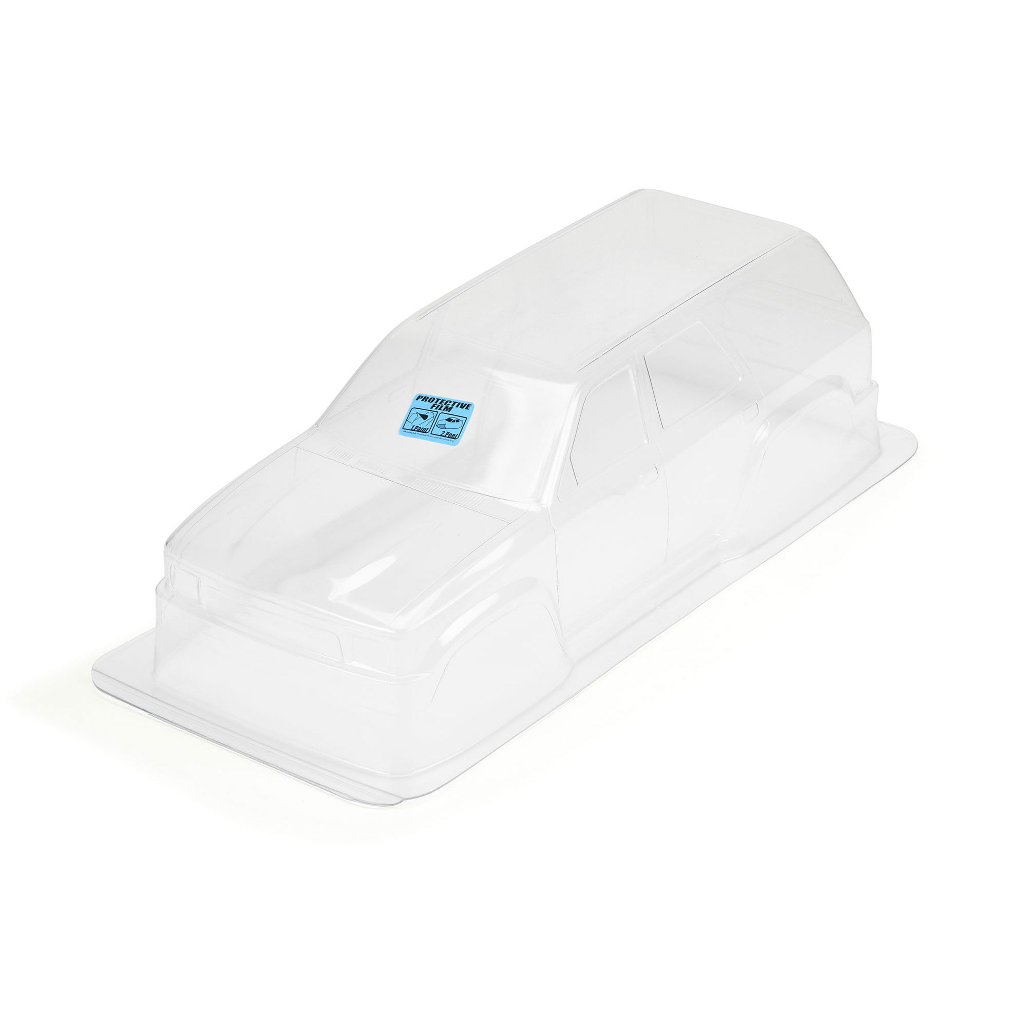 This is a 1991 Toyota 4Runner Clear Body for Crawlers. Pro-Line is ready to unleash another fully licensed body for Toyota fans: the 1991 Toyota 4Runner! All of the scale detail from the full-size 2nd Generation 4Runner SUV body style has been scaled down to fit on your 12.3″ wheelbase Crawler. The 4Runner is an iconic vehicle that serves as the base of many full-size off-road rigs and now you can have your own for your Scale Crawler! See your scale project come to life, get yours today!