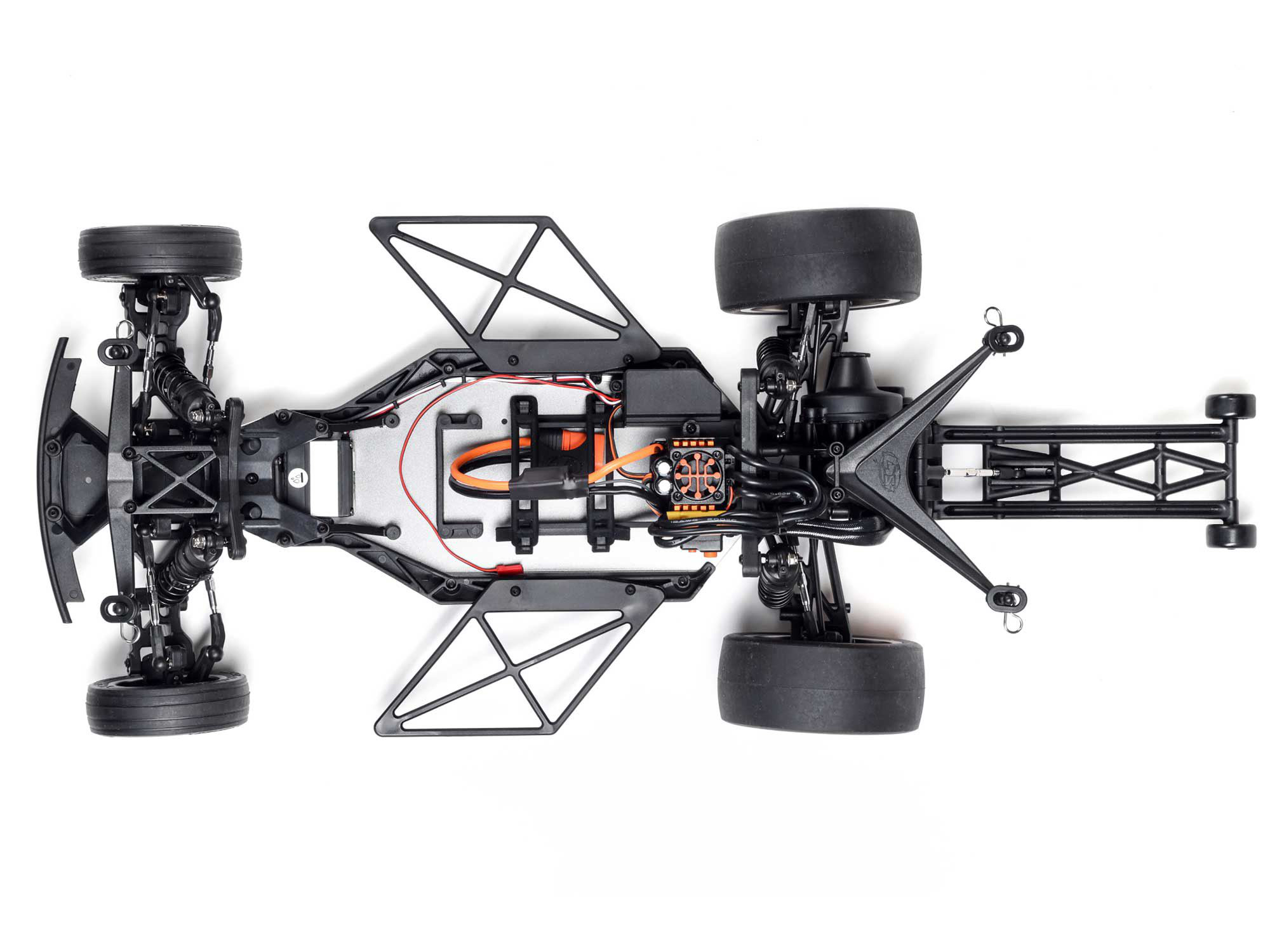 This 22 aluminium chassis will provide accurate and positive grip to the road when you are pushing the limits of power and traction. This chassis is designed with electronics protection, side impact guards, and a clean wire management system.