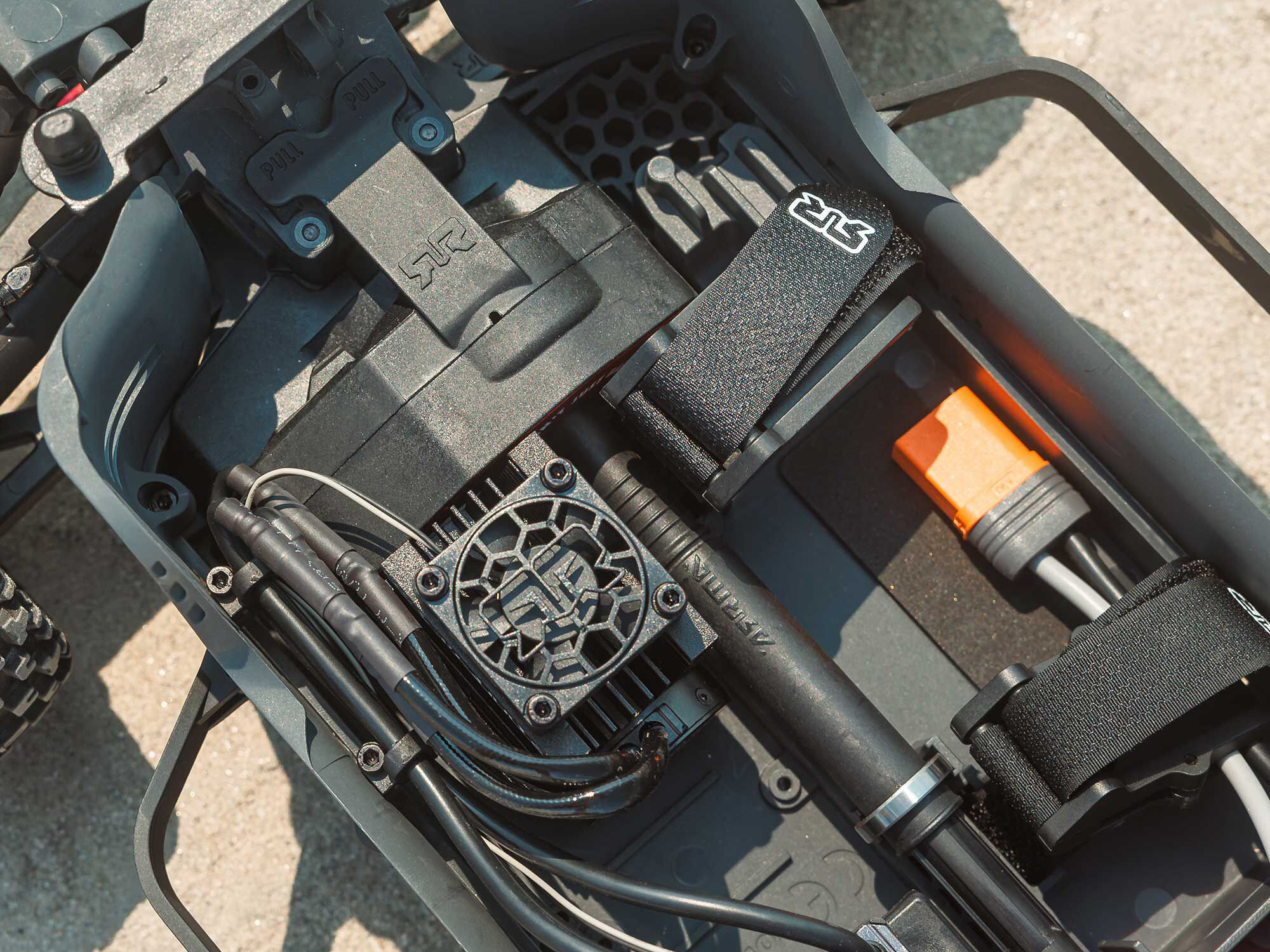 You control how fast your SENTON 223S BLX 4X4 can go with the battery you choose and where you set the Spektrum SLT3 transmitter’s throttle limiter switch. With throttle limiting, the SLT3 automatically limits top speed to whatever level you prefer until you’re ready for it all. Set the switch to 50% or 75% and you’ll never have to worry about moving faster than you can safely manage. Make the transition from 2S to 3S brushless speeds with complete confidence.