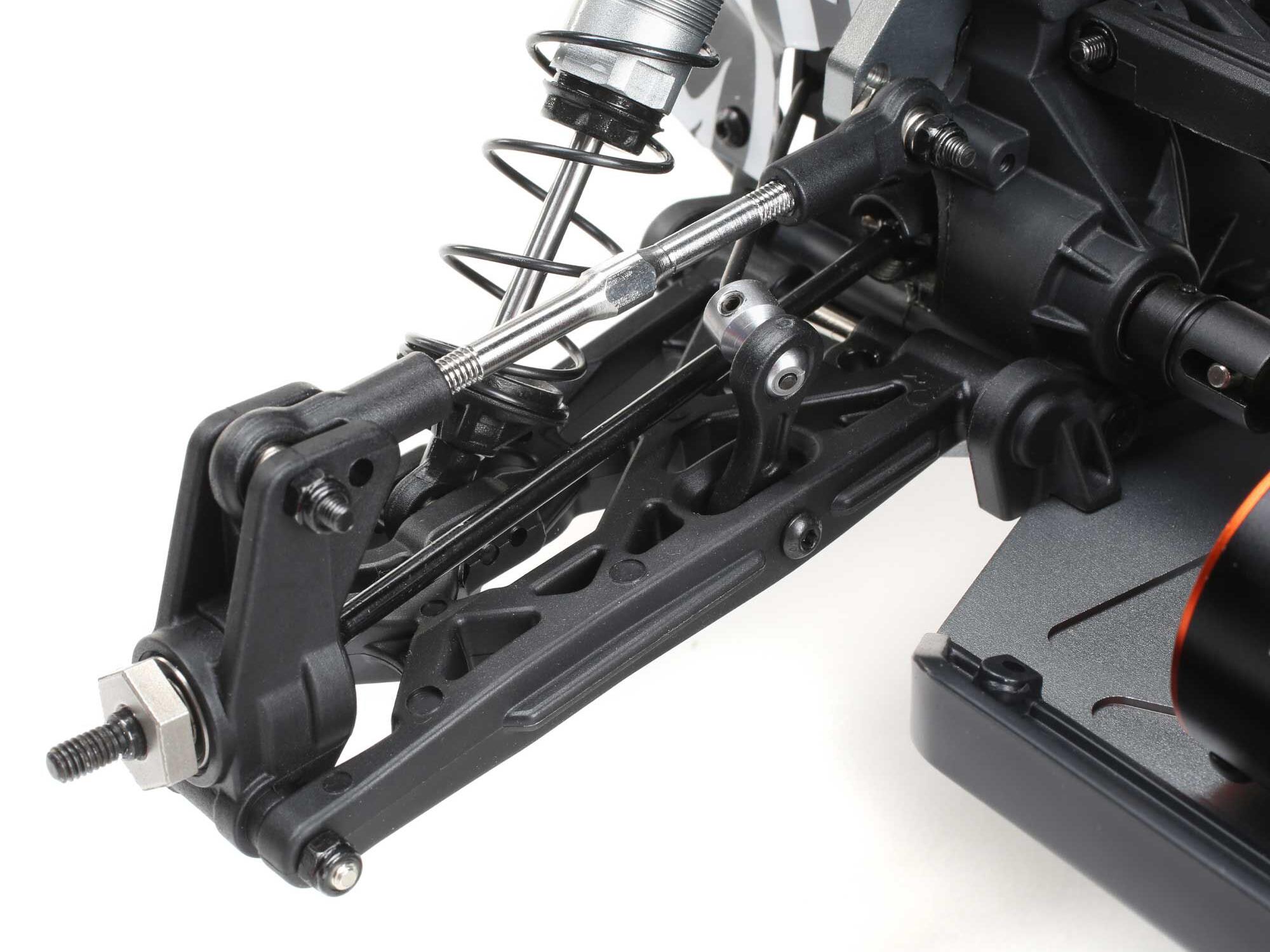 The foundation of the TENACITY DB Pro consists of a 3mm, anodized aluminium chassis plate with a composite upper deck. For added durability and performance it’s integrated with a realistic roll cage made of super-tough composite material. Whether you are hitting the whoops, getting huge air, or just wide open, the 3mm chassis just keeps asking for more!