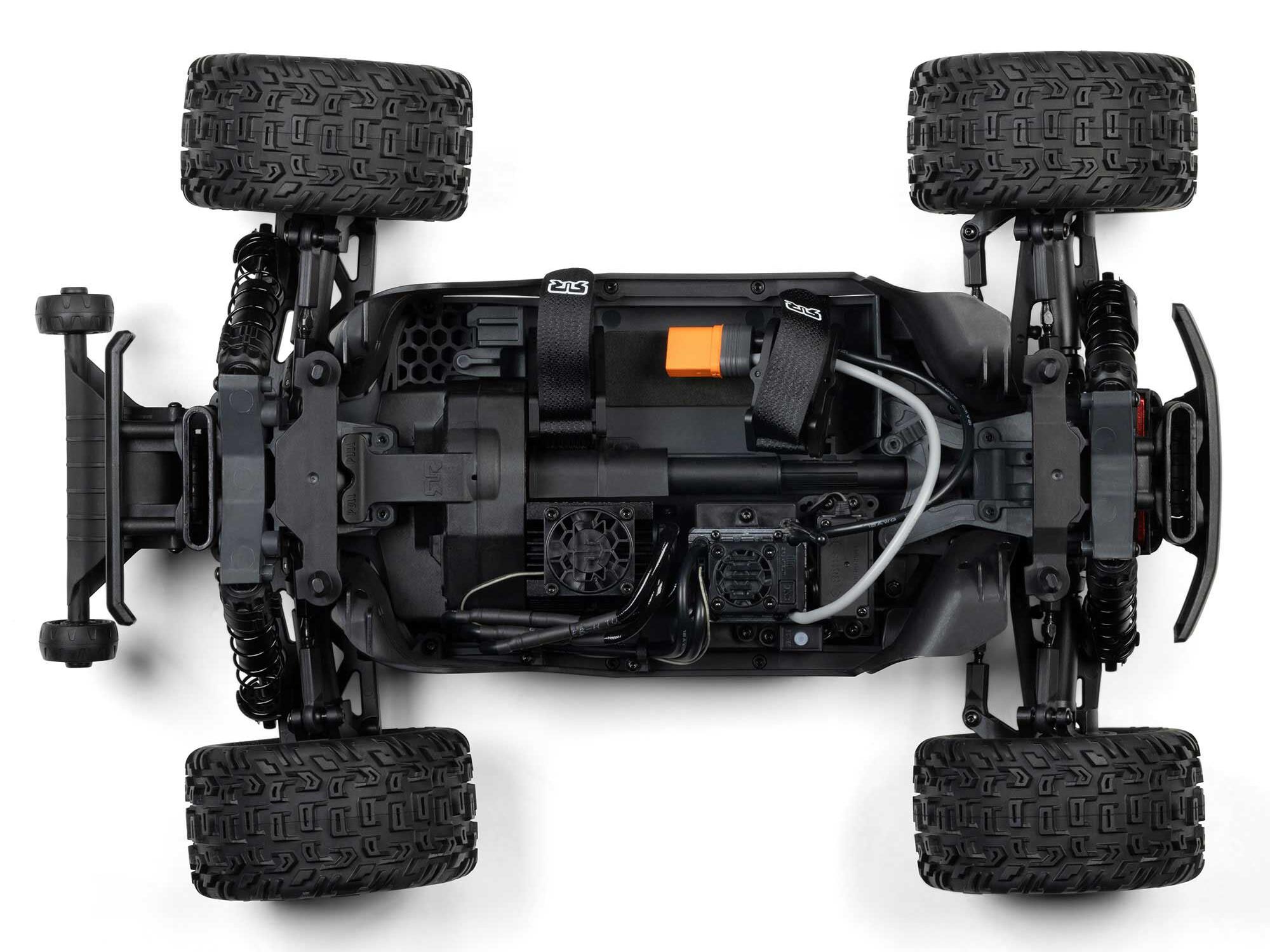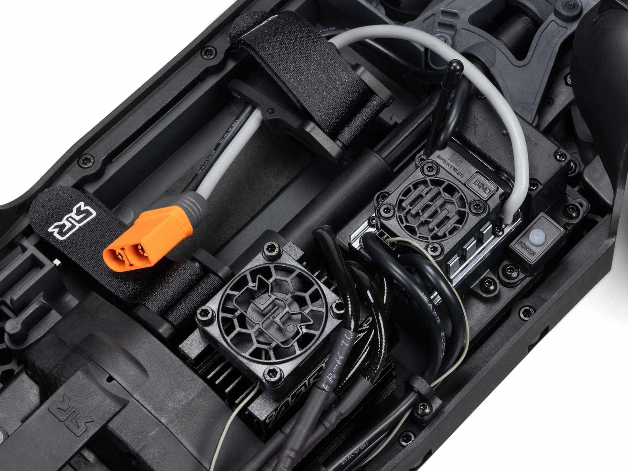 Factory assembled and installed, the heavy-duty, metal gear differential sends power from the Spektrum 3100Kv brushless motor to all four wheels for blasting through challenging terrain. The entyre power system is well-protected for dependable performance on all terrain.