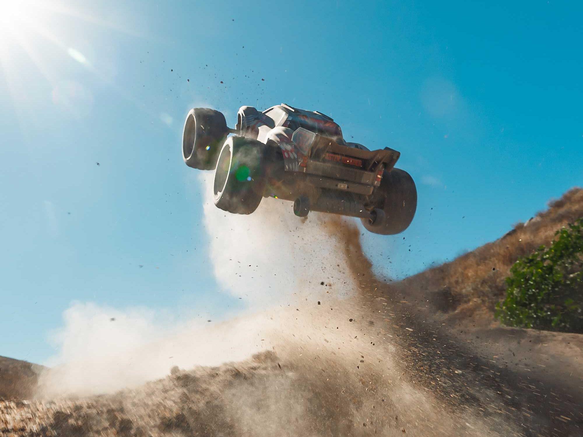 The all-terrain independent suspension and oil-filled, coilover shocks soak up bumps. If your bashing takes you over uneven surfaces, you can adjust the ride height to increase ground clearance.