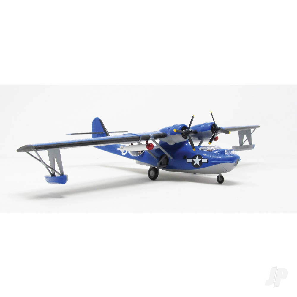 1:104 Scale. This kit comes from the classic Monogram tooling. This was of the first Aircraft kits they produced along with the B-26 and the B-25 which we also own the tooling for. The kit features engraved markings and lots of rivets but is a classic. It has a wingspan of 12 inches and measures 8.25 inches long. Decals are included for 2 versions and it comes with a nice sprue of clear parts, 6 in total. New artwork based on a PBY rescuing the men from the ill fated USS Indianapolis. The oval PBY logo is on the decal sheet if you wish to mount your PBY on our clear globe swivel stand sold separately.