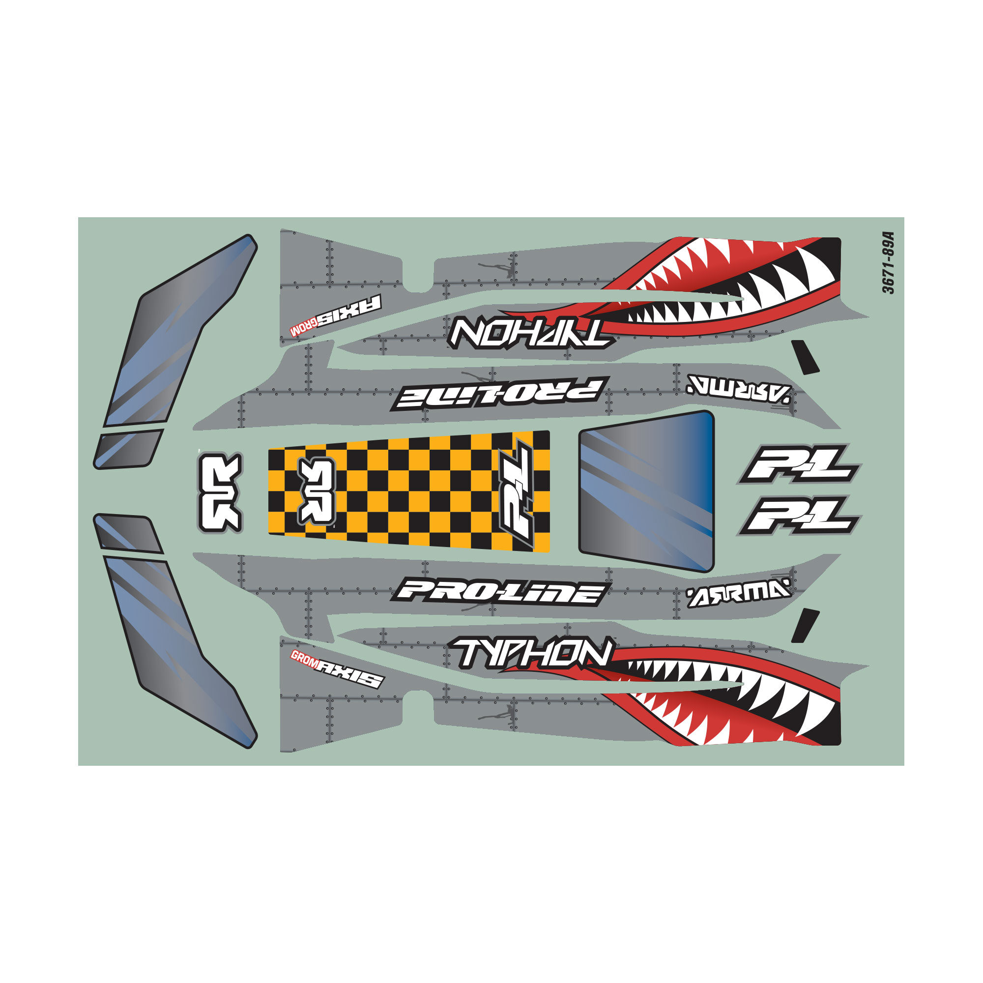 Proudly Made in the USA, the Axis Tough-Color polycarbonate is made from gray material, giving you a faster way to get to your GROM performing with no paint needed! Included are stylish “Shark Mouth” livery graphics and realistic window stickers that look great with the TyphonT GROM. Paint-then-peel overspray film, window masks, and Pro-Line decals are also included. Hit the track in fresh, Pro-Line style with the Axis race body for the TyphonT GROM!