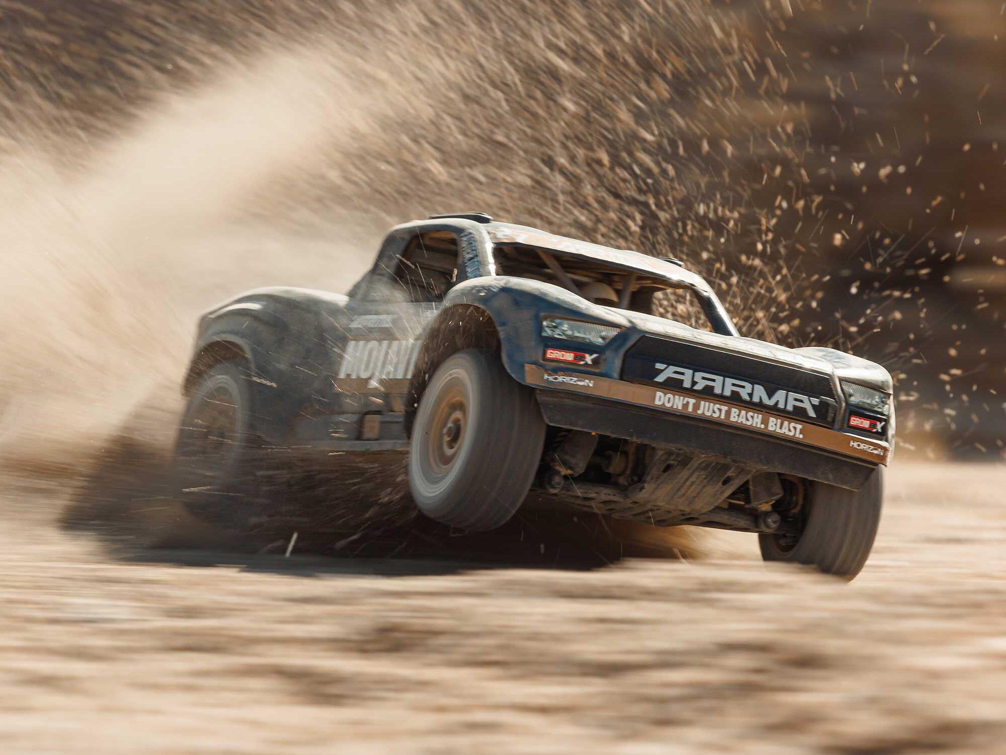 ARRMA created the 223S series because no one wants to compromise when choosing their first or next RC vehicle. You don’t want to sacrifice capabilities to get a low price, or blow out your budget to get performance that grows with your skills. You want it all, and you can have it in the MOJAVE GROM 223S BLX. Low cost, legendary toughness, and the ability to advance from 2S into 3S power are all available in this one desert truck.