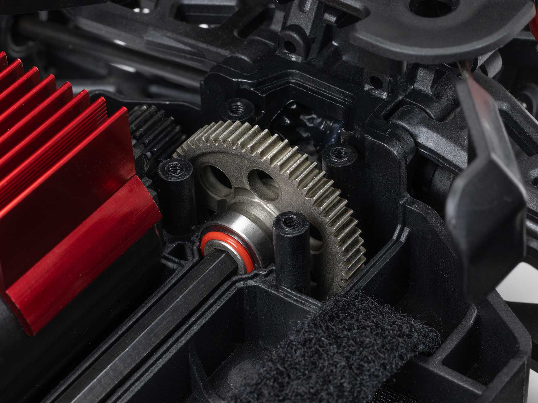 Enjoy carefree bashing with your ARRMA GRANITE GROM monster truck in any conditions. The transmission has metal spur and crown gears for durability. Even the installed Spektrum SX110 waterproof steering servo has tough metal gears.