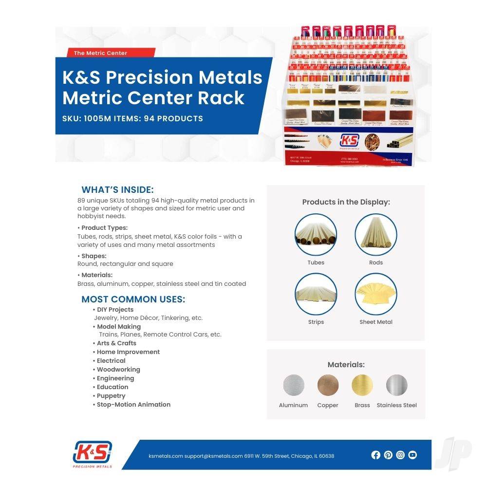 K&S Precision Metals proudly upholds its enduring dedication to hobby and hardware stores, a legacy that extends over seven decades, through our iconic display racks. Countless customers who fondly remember accompanying their parents on shopping trips have forged a lasting bond with K&S materials, turning it into a legacy partnership.