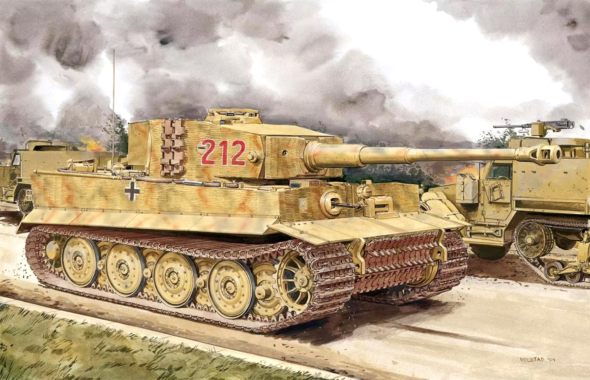 In the battle in Normandy, Wittmann was associated with two iconic Tiger I tanks that played a pivotal role in his exploits. The first was Tiger I late production “212”, which he employed to devastating effect in the Battle of Villers-Bocage against British and Canadian forces in Normandy. Wittmann’s final mount was Tiger I No. 007, the site of his dramatic last stand near the town of St.Aignan de Cramesnil, where his career came to an end on August 8, 1944 when his Tiger was destroyed.