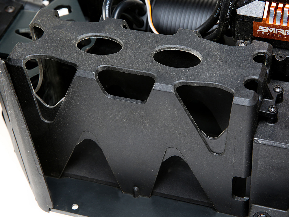 Just like the 1:1 desert trucks, the Super Baja Rey 2.0 comes with a super-rigid roll cage made of super-tough composite material that enhances the truck’s scale looks and durability. It is integrated with the 4mm anodized aluminium chassis plate providing the ultimate protection for your truck and electronics.