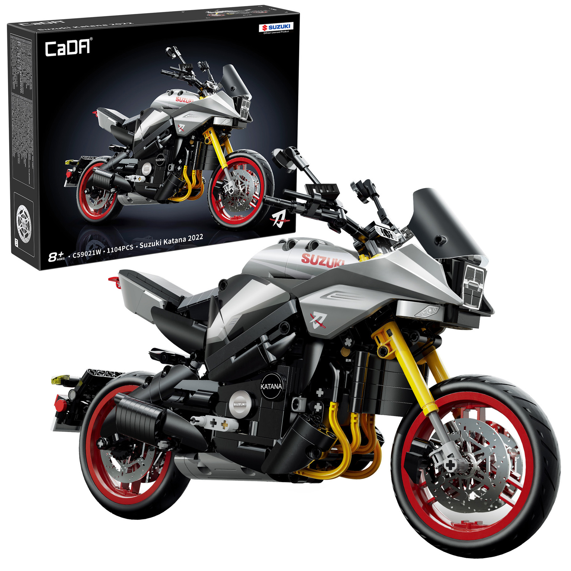 This officially licensed brick model recreates the motorcycle in 1:6 scale with such details as headlights, front shroud, rearview mirror, seat cushion, dashboard, fenders, chain, engine, brake discs and rubber tyres. It also has working front and rear suspension, working steering and handy kickstand to stay upright.