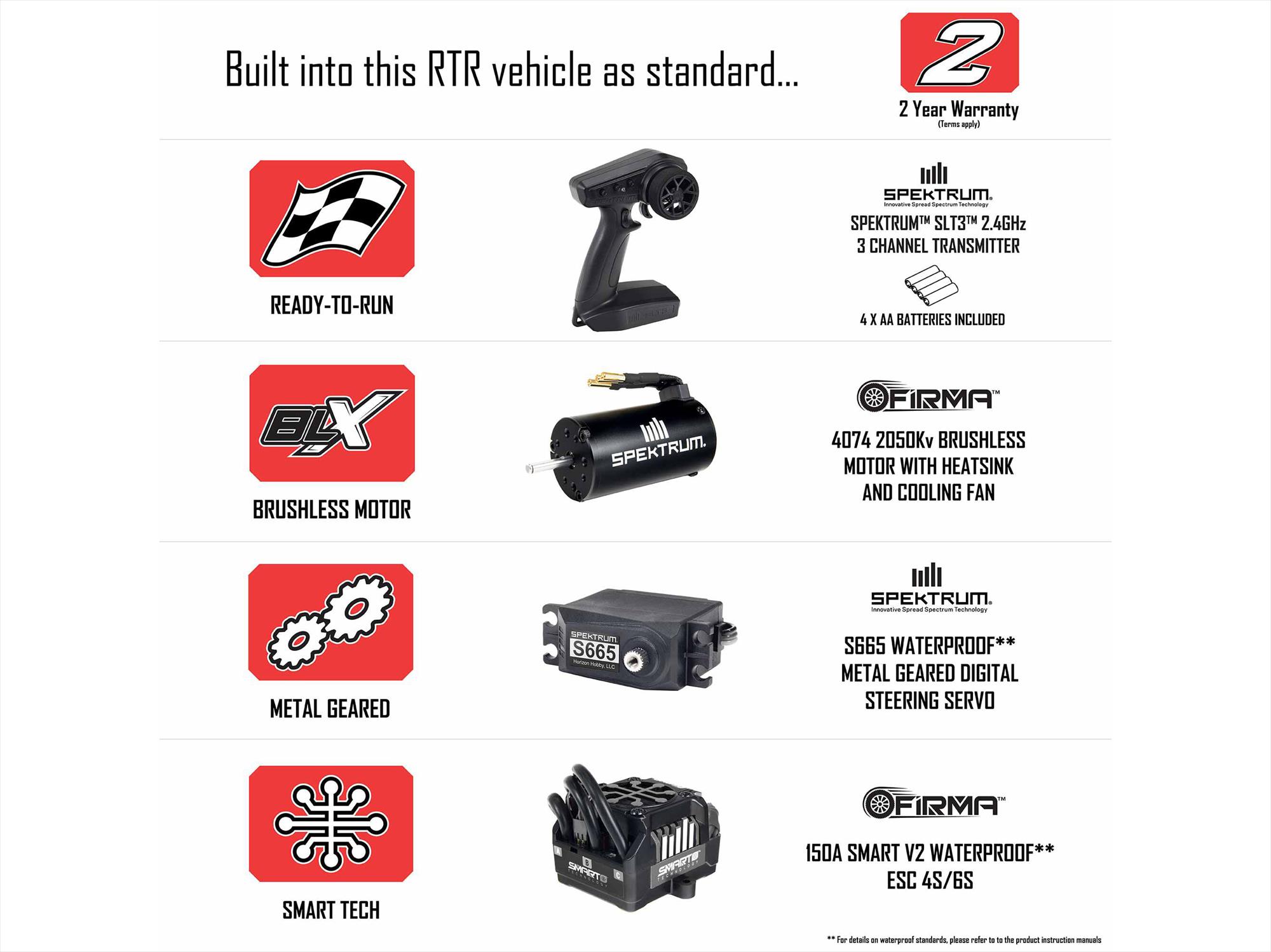 - (1) Spektrum™ Firma™ 150A Smart V2 Waterproof* ESC