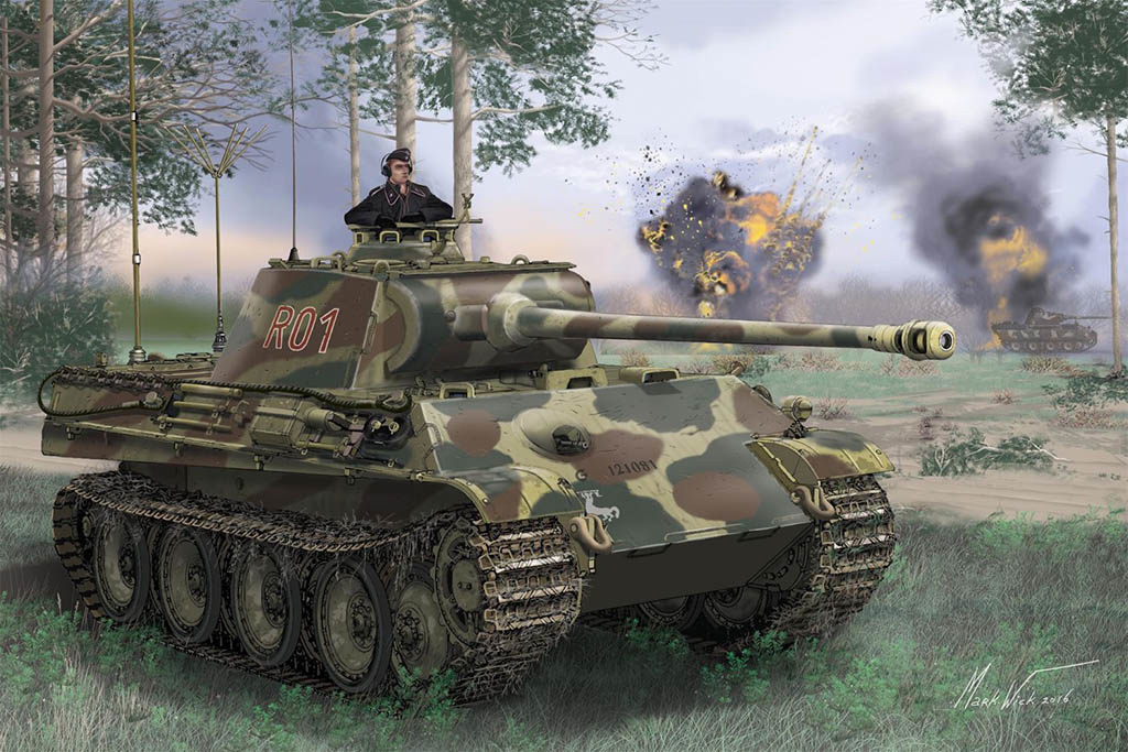 The 45-tonne Panther was one of the most important tanks used by Germany during WWII, and a number of Ausf. A and Ausf.G vehicles – 329, in fact – were converted into command tanks from May 1943 to February 1945. These were known in German as Panzerbefehlswagen, and they were used as battalion and regimental command vehicles, as well as for ground-to-air liaison. As the kit title indicates, this command tank is based on a Panther Ausf.G hull. It has all the additions needed by a Befehls Panther – for example, there is a pair of star antennas on the engine deck, and the correct mantlet for a command Panther is also present. The most notable aspect of this kit is 3D-printed parts to give the necessary scale appearance. The reinforced mantlet, star antenna, antenna rods and bases are all manufactured this way. This 1/72 scale Befehls Panther kit will command a lot of respect thanks to its accurate and easy-to-build features.