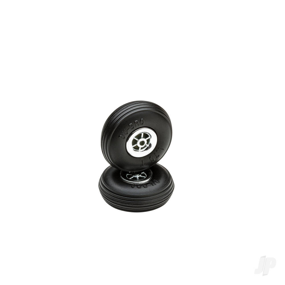 DU-BRO s treaded low bounce captive air wheels have flown on more airplanes over the years than any other wheels on the market! The wall thickness is consistent throughout the wheel giving you a balanced Tyres. Comes complete with a sporty nylon 6-spoke metallic hub. Works well on grass & paved runways. 2/pkg .