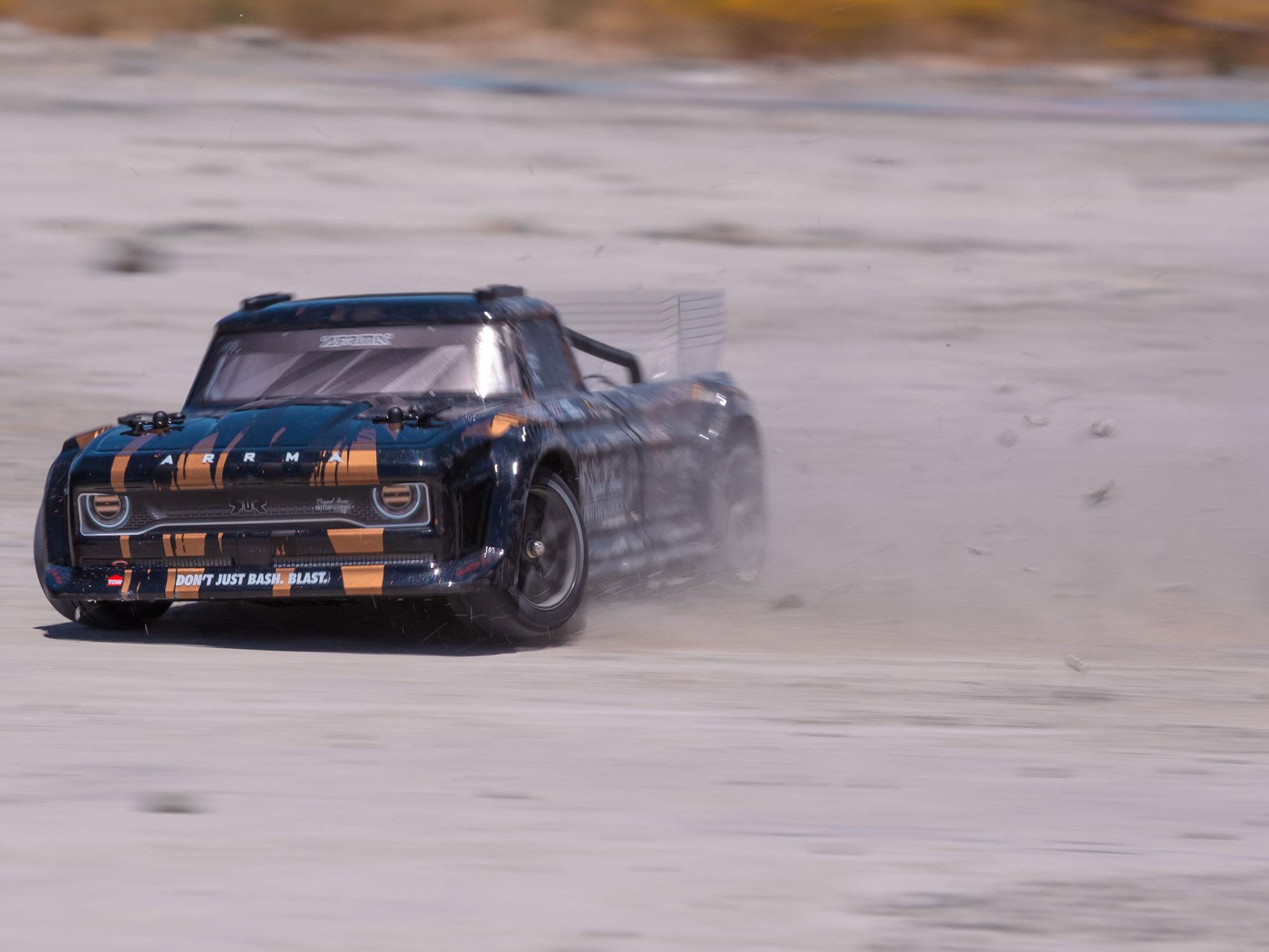 Using the AVC® system’s on-demand traction control, you can dial-in extra stability as needed to carve corners or nail jumps without backing off the power. You have full-throttle freedom over uneven terrain, slick surfaces, and loose dirt. When you don’t want the extra traction, just dial back the stability. The AVC® system works behind the scenes, making hundreds of minute steering and throttle adjustments per second to keep the INFRACTION® 4X4 3S BLX All-Road Street Bash Resto-Mod Truck precisely on the line you want to hold.