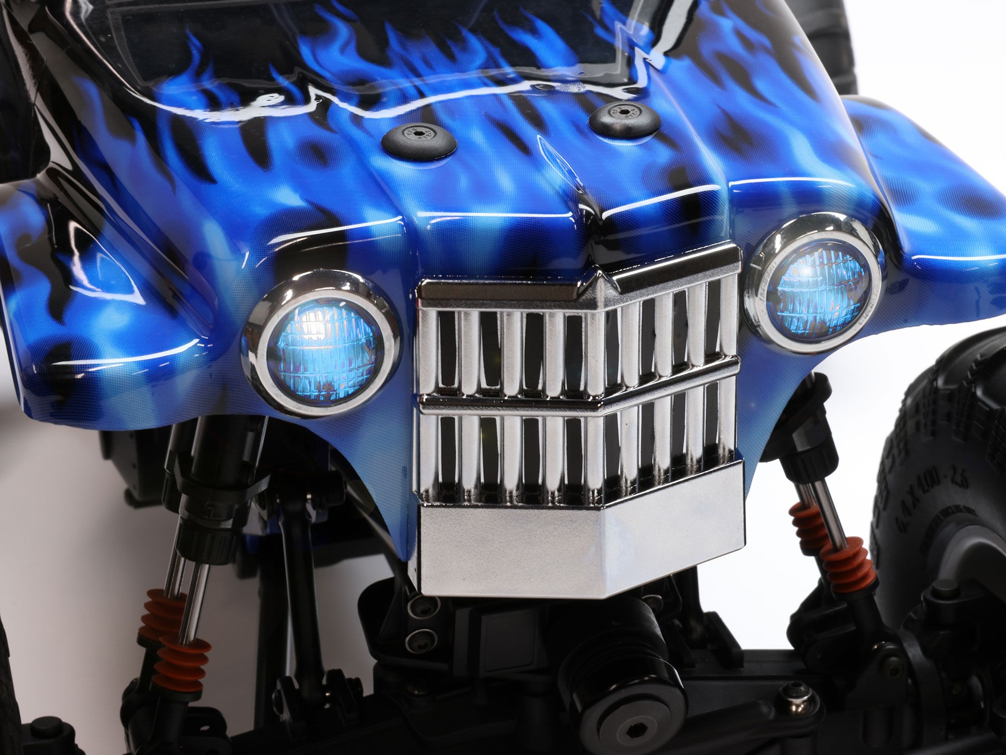 Many scale details are included to give the officially licensed monster truck bodies a true scale look. The exhaust headers, LED headlights, a driver figure, and authentic lower chassis sponsor panels all make it easy to imagine you’re driving the real truck.