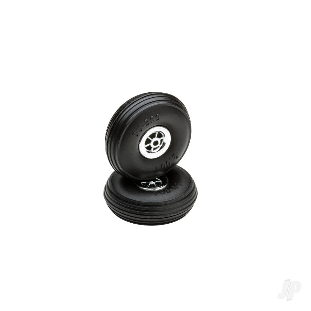 DU-BRO s treaded low bounce captive air wheels have flown on more airplanes over the years than any other wheels on the market! The wall thickness is consistent throughout the wheel giving you a balanced Tyres. Comes complete with a sporty nylon 6-spoke metallic hub. Works well on grass & paved runways. 2/pkg .