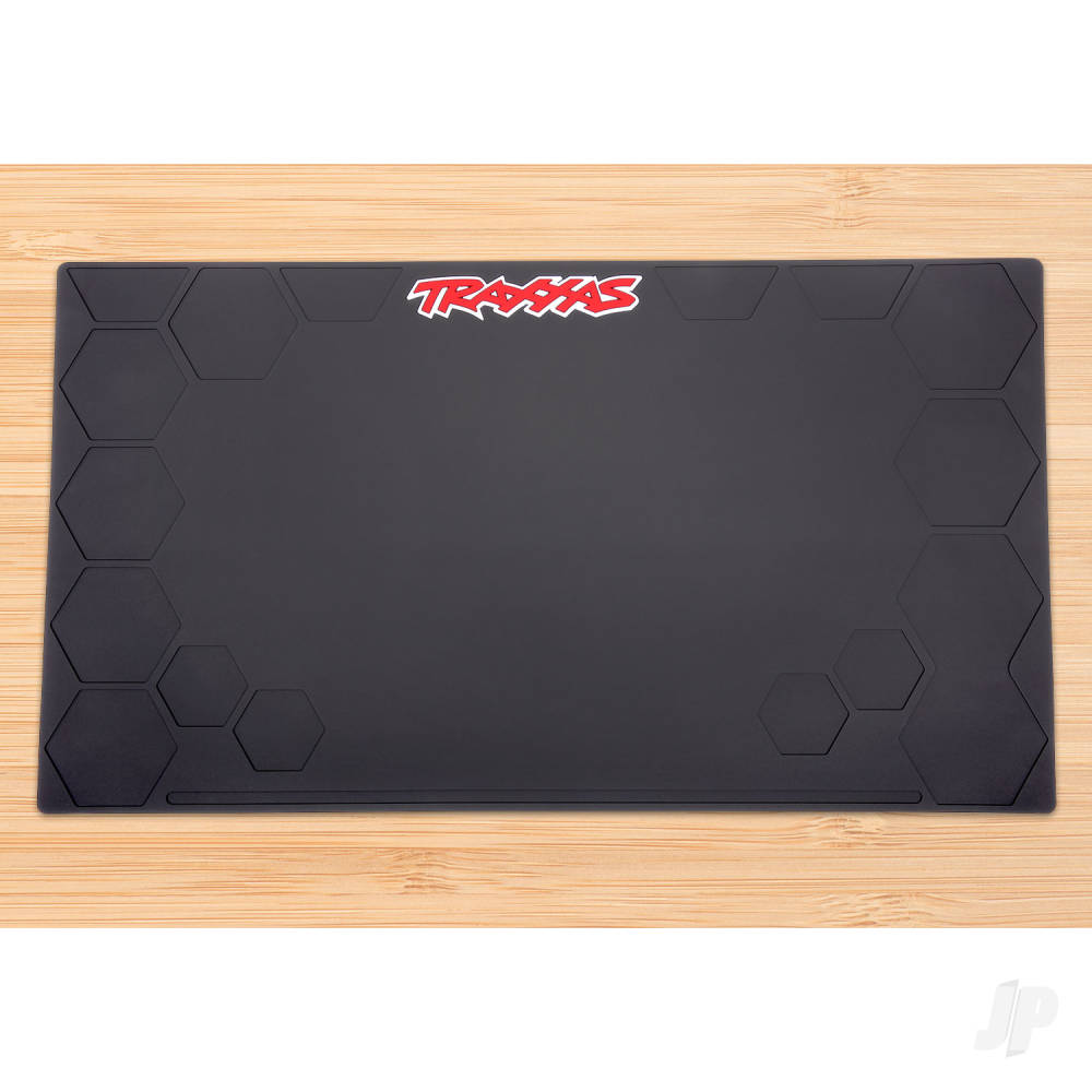 Traxxas Heavy Duty pit mats are the perfect addition to your RC workbench. The chemical-resistant, heavy-gauge rubber construction takes a pounding to help protect your work surface from damage. The generous 36″ x 20″ (91.4 x 50.8cm) size is large enough to accommodate most Traxxas vehicles, with specially designed compartments to organise your parts and tools.