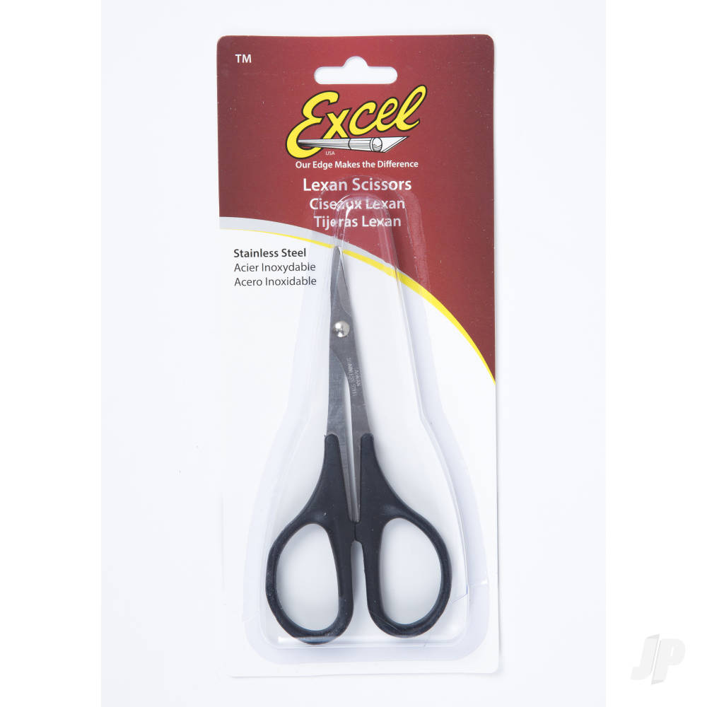 - The Excel Blades Lexan Scissors are made of a stainless-steel body with injection molded soft grip for comfortable and secure finger(s) insertion and hold. The diversity of the stainless-steel shears allows this tool to perform perfectly on completing projects involving trimming and making smooth cuts on different materials. These Scissors are wear-resistant and ensure precise and crisp cuts.