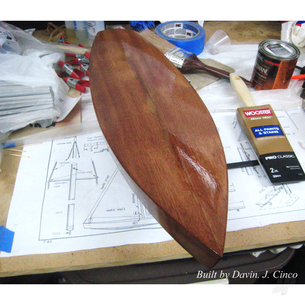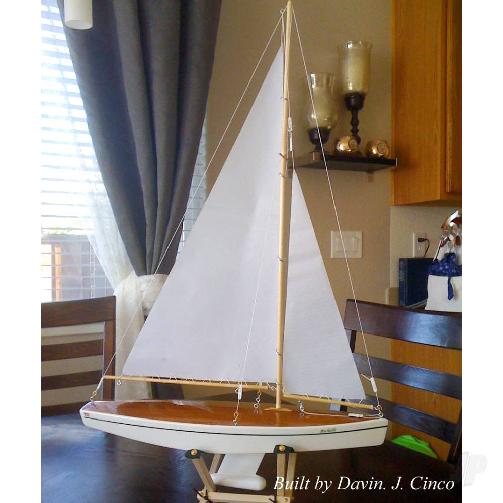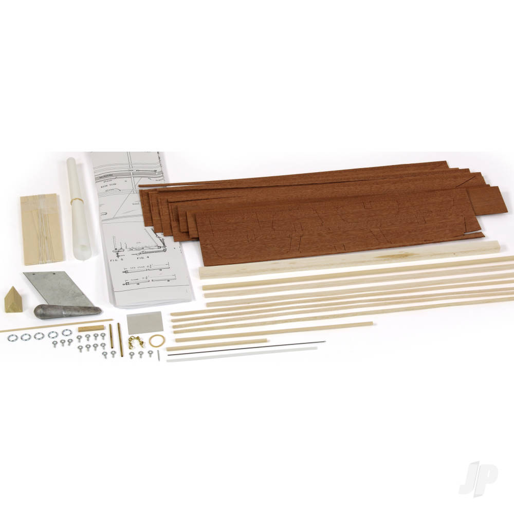 A free sailing model for small lakes or swimming pools. Built from Die cut mahogany with 21 inch birch mast and cloth sails. All rigging and fittings are included.