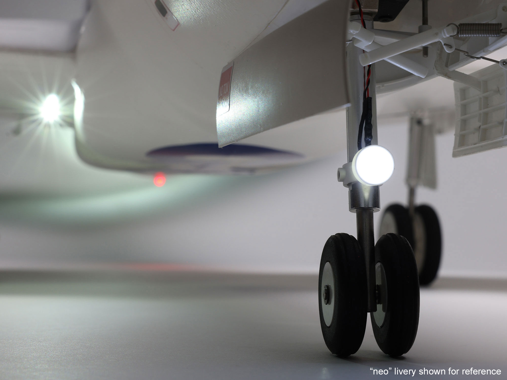 • Functional features including LED navigation, strobe and landing lights, operational flaps, retracts and nose gear doors