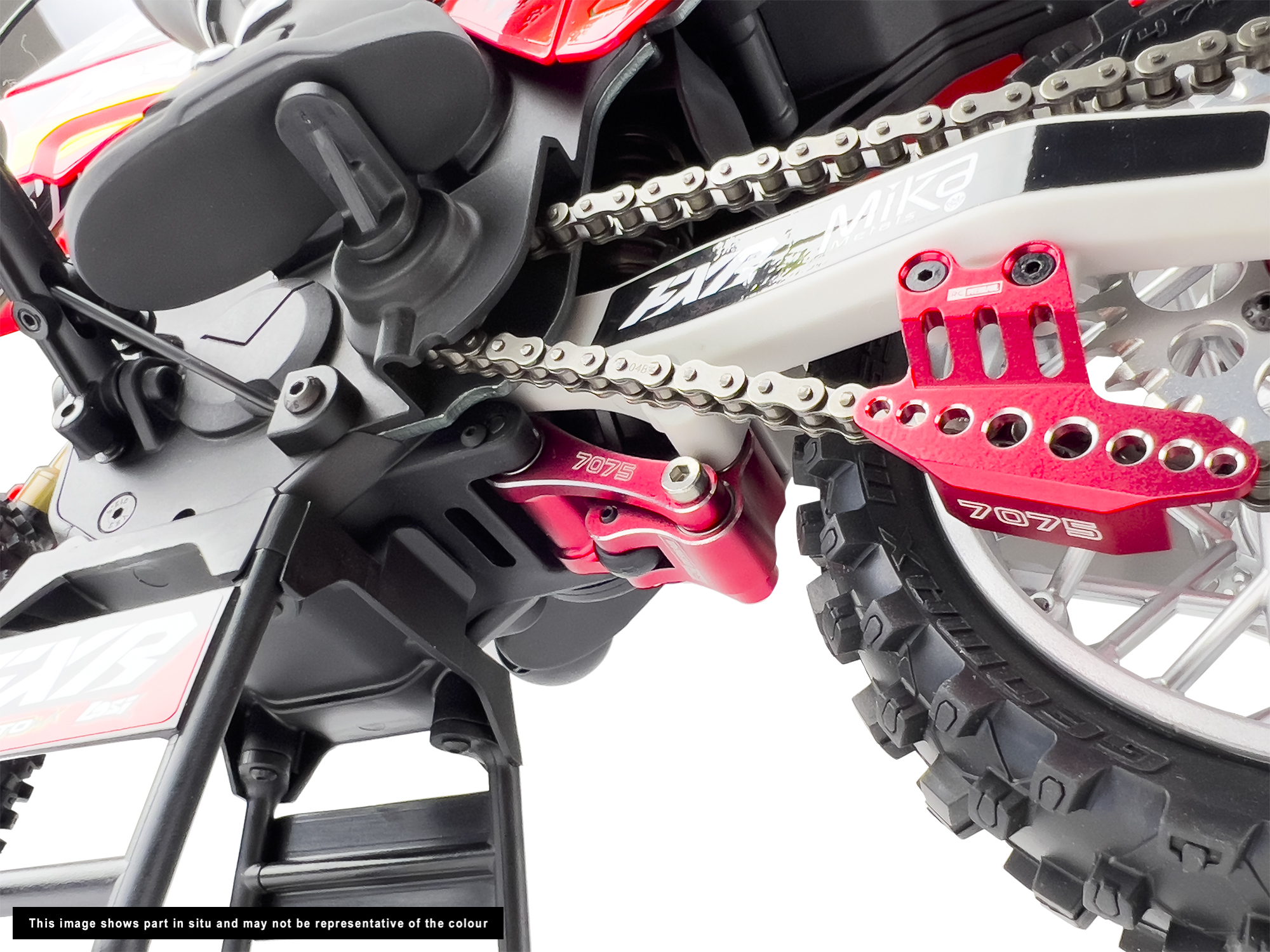 This 7075 aluminium Knuckle and Pull Rod offers better strength and durability over the stock plastic part for those pushing the limits with their Promoto-MX. It features six ball bearings which ensure smooth operation over the standard brass bushings. Anodized to offer an added level of durability and personalisation and to finish it off the ‘RC Overhaul’ logo is laser etched onto the part that adds a smart small detail that makes your bike stand out from the rest.