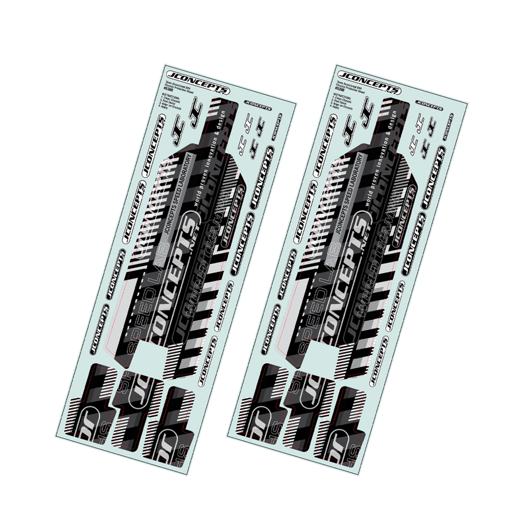 The chassis protective sheet is produced in a highly durable material making it ideal for carpet, turf, and dirt off-road racing. The profile lines the chassis shape and tucks into the front kick-up of the chassis and rests underneath the bumper to limit forward edge access. Out of the JConcepts Speed Laboratory, the neutral colors and layout match any racing scheme at the track and looks quick while doing it. With 2 complete sheets included per package, the durable and resilient material fits each chassis layout like a glove and adds protection and style in one easy package.