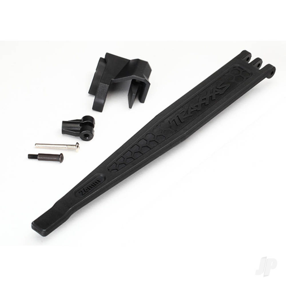 Battery hold-down comes with battery clip, hold-down post, foam spacer, and screw pin. Fits 4-Tec 2.0 vehicles with 256 mm wheelbase.