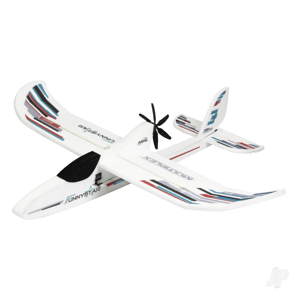 Just when you thought foamie trainers couldn t get any more crash proof, Multiplex ups the bar by taking the time-honoured EasyStar configuration, reproducing it in impact-resistant EPP, and giving it a crazy name. Well, two out of three isn t bad, and what the FunnyStar lost in the nomenclature phase of its development it more than makes up for in performance, good design and traditional Multiplex quality. Beginners will love it for its ease of construction, beautifully stable and forgiving flying characteristics and utter convenience, whilst old hands will enjoy its simplicity, its chill factor and the opportunity to reacquaint themselves with the pleasures of basic, controlled flight. Speaking of simplicity, since the FunnyStar is a 3-channel design, Multiplex has been able to engineer a toolless wing removal system for ultimate travel and storage convenience. Funny it certainly isn t; fun it certainly is.