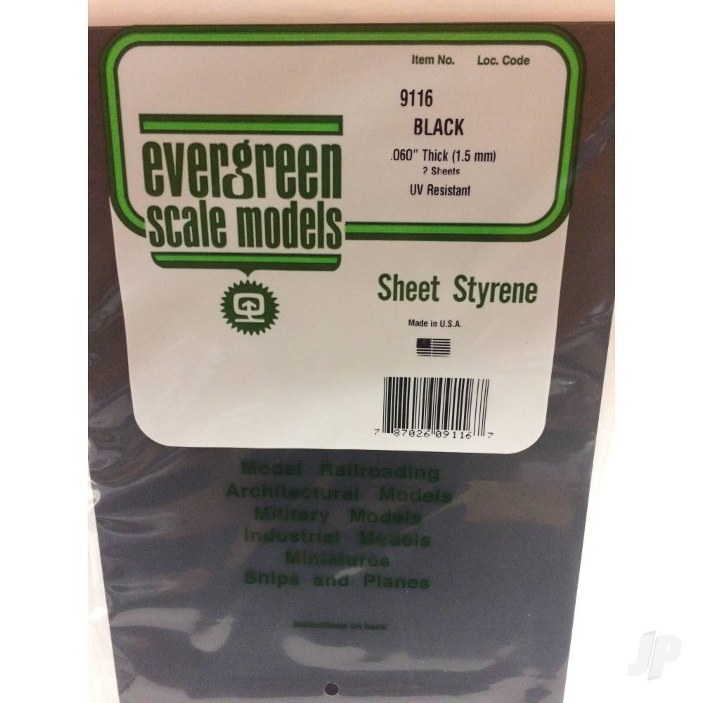 Evergreen Black Sheet, 200 x 530 x 1.5mm (8 x 21 x .060in) (2 per pack)
