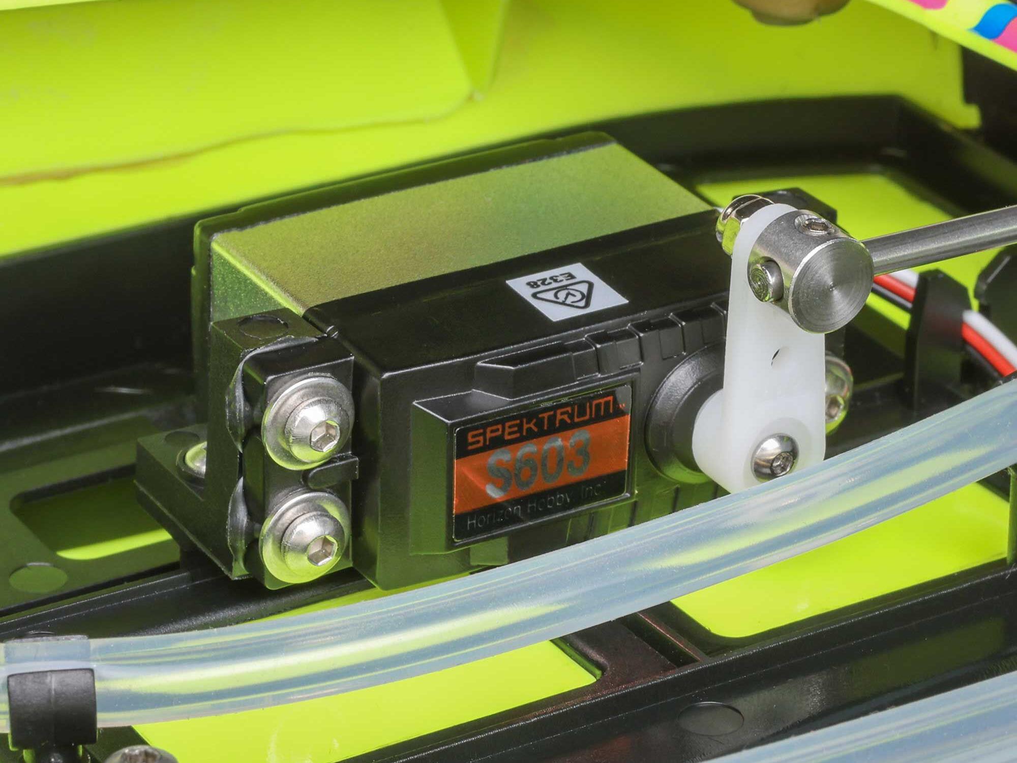 When you’re running on water, chances are good a small amount will get into the hull. Spektrum receivers are water resistant, but the exposed pins that accept servo leads are susceptible to connection issues if they do become wet. The Blackjack 24″ catamaran includes a receiver box that locks out moisture and keeps this critical component safe and dry.