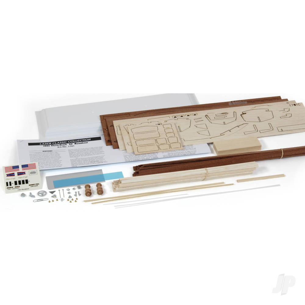 - Contains laser cut balsa and mahogany parts.