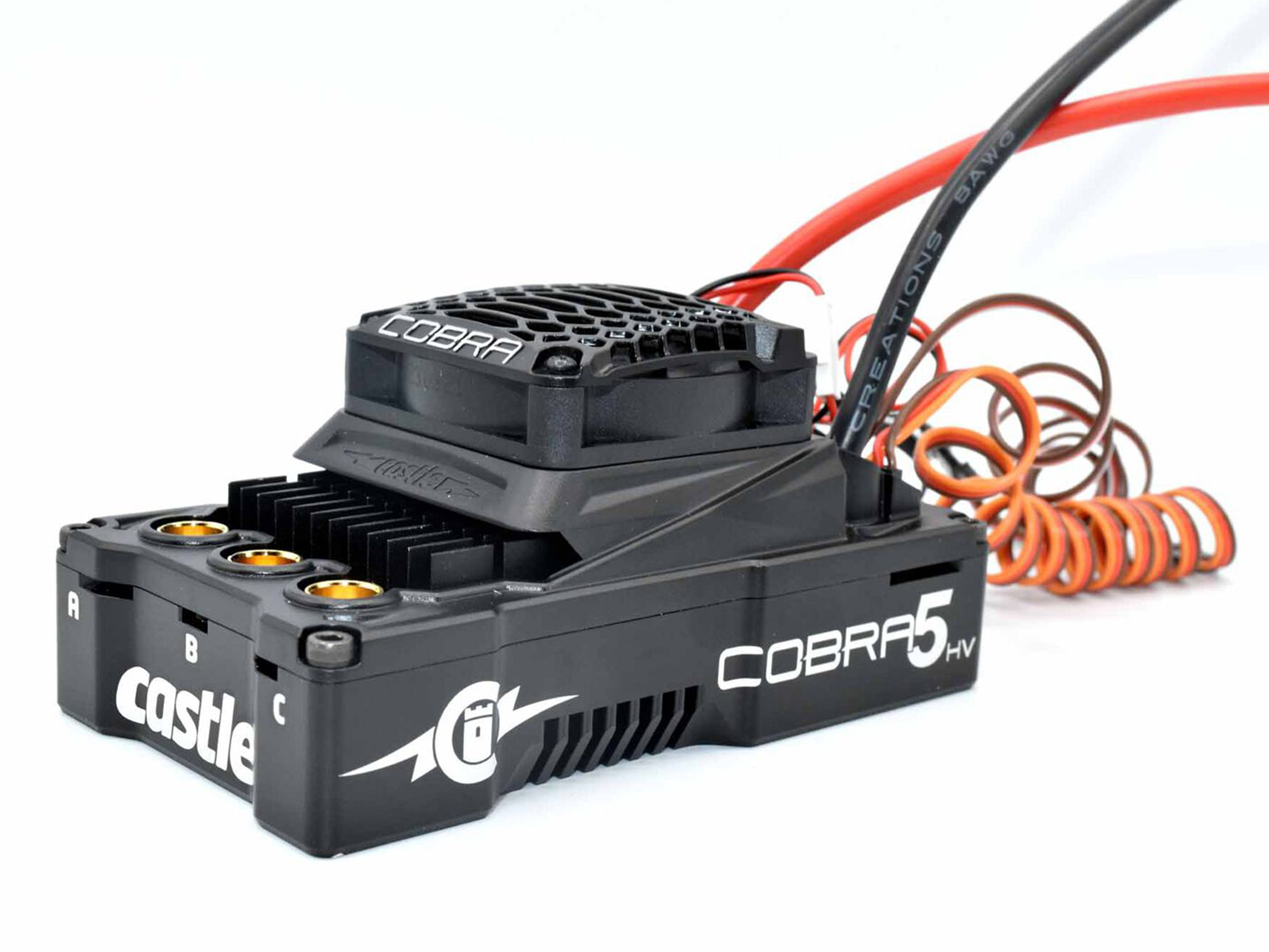 Castle is proud to announce the highly anticipated COBRA 5 HV- our most powerful surface ESC to date. Building on the success of the Cobra 5, the new HV model raises the voltage ceiling to 12S LiPo (50.4V) and is engineered to dominate 1:5th and 1:4th scale RC vehicles up to 50 lbs.