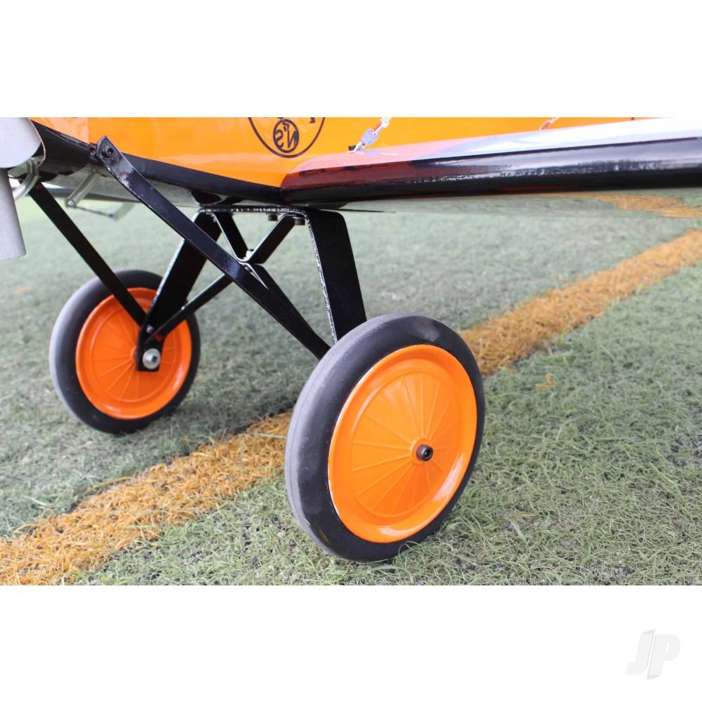 Spanning 72 this 1/4-scale balsa and ply four-channel model features a convenient cockpit hatch for easy access to fuel tank, radio, flight batteries et al, and, crucially, detachable pre-rigged wing panels which, for storage and transport, are supported by temporary root section frames. Scale wheels, undercarriage, struts, flying and landing wires and beautifully applied Oracover film complete a picture which will turn heads wherever it’s displayed. Get it in the air and your flying pals will be green with envy.