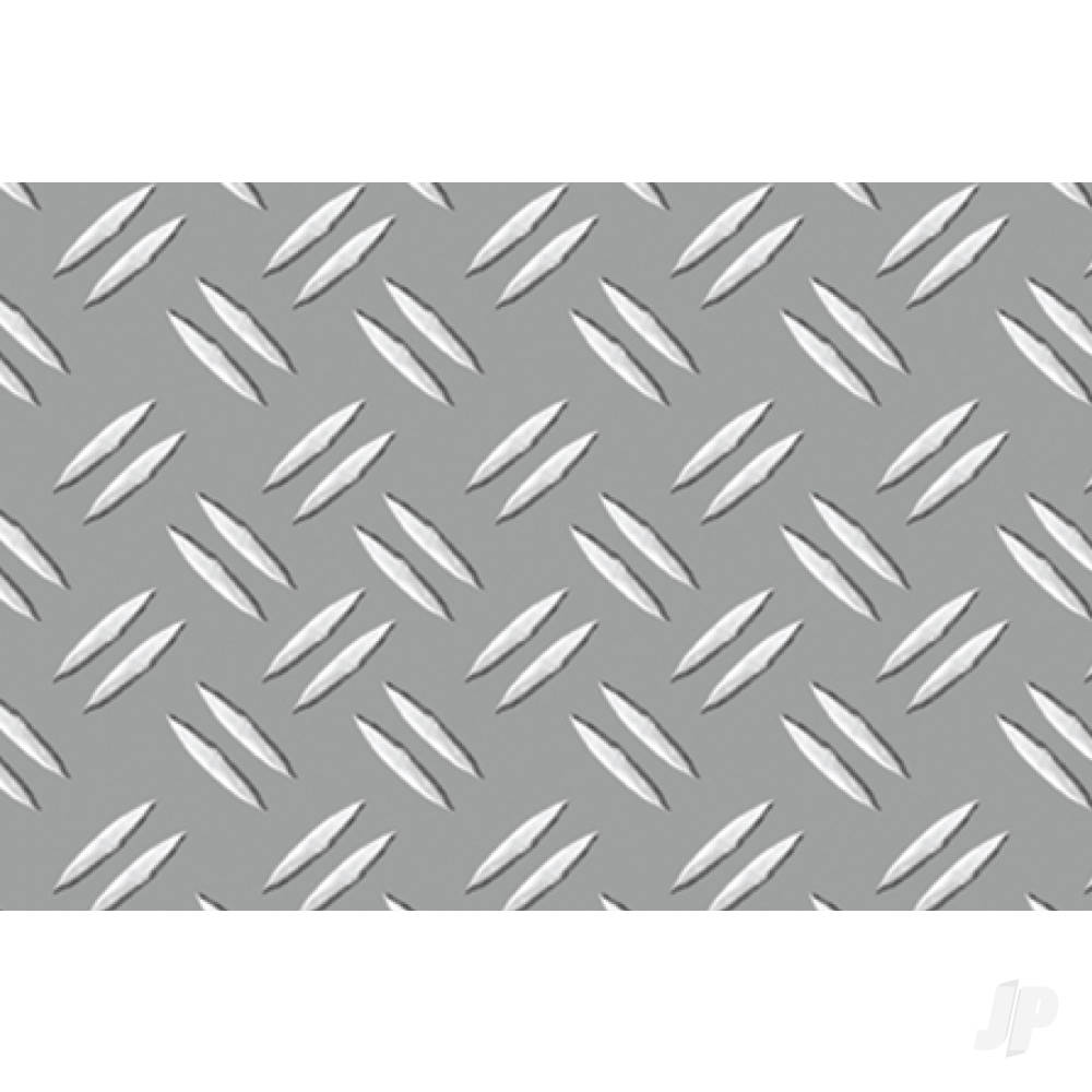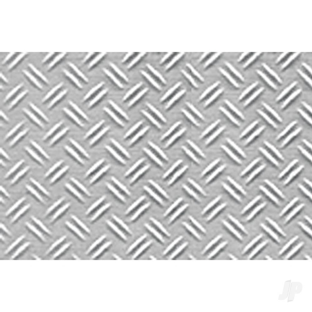JTT’s complete range of embossed styrene plastic sheets can be used to create roofing, flooring, siding, rock, stone, metal plate and other architectural parts. The sheets are demanded by architectural firms and modellers for their accurate, embossed detailing and versitality. This pack includes “Double Diamond Plate”, O-scale, 6.0mm (1:48).