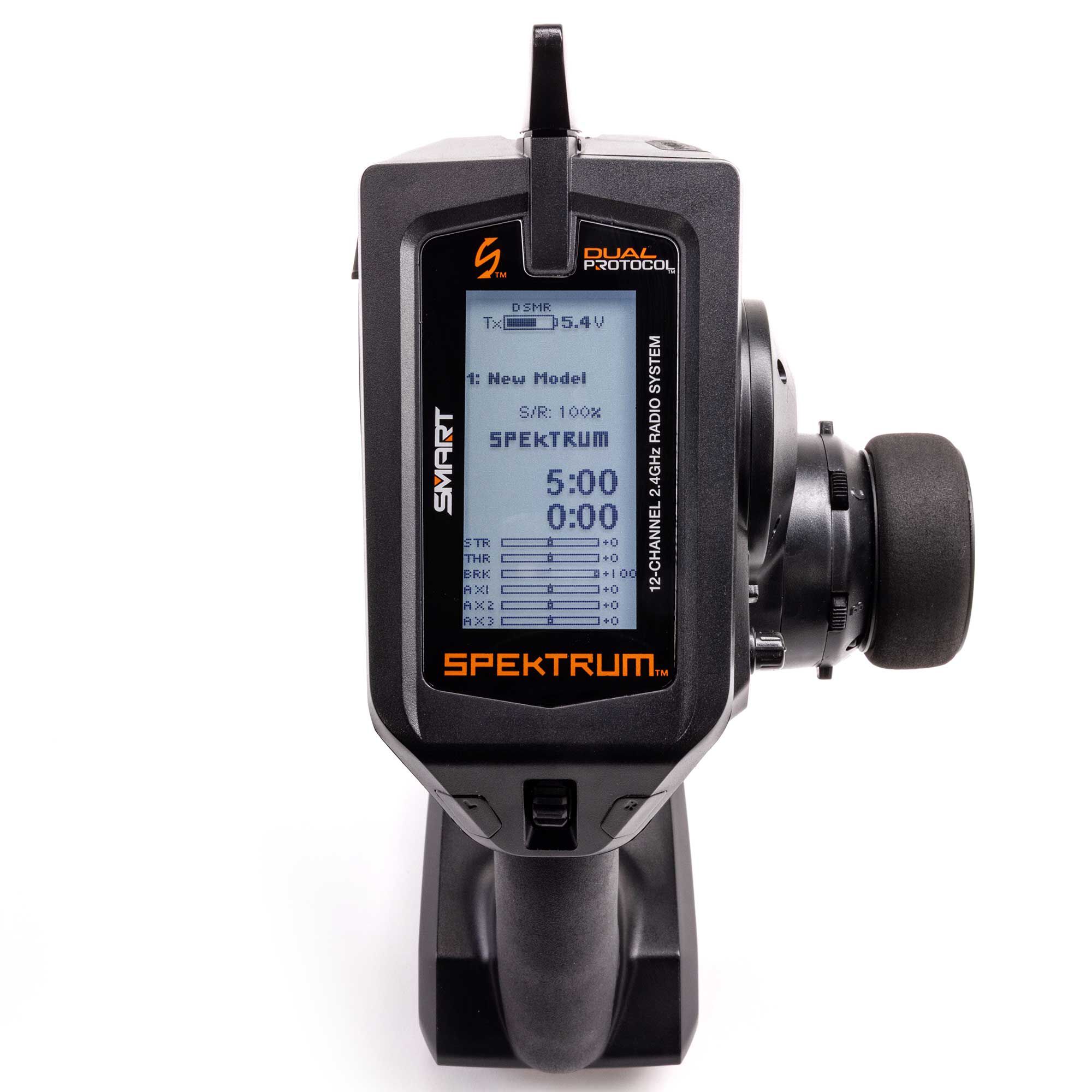 When combined with Spektrum Firma Smart ESCs and Spektrum Smart capable receivers, the DX Pro+ receives telemetry data right to your transmitter through the Smart Throttle port on the receiver. Smart Throttle ESCs can send RPM, speed, ESC temp, volts and amp draw.