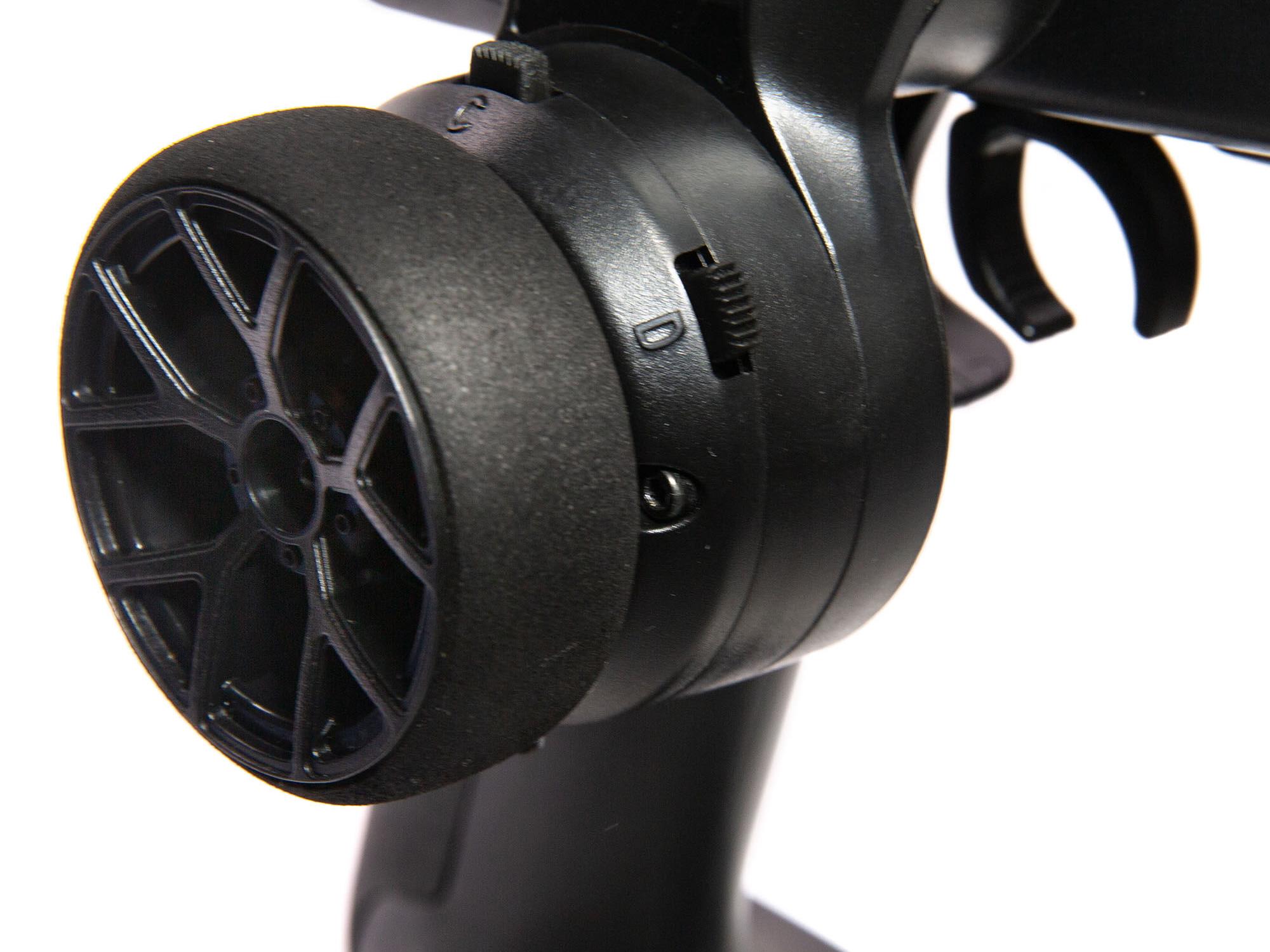 The ergonomically designed DX5 transmitter has a feel that any driver can appreciate. Its overall low weight minimizes fatigue, while the non-slip rubber grip and trigger-throttle action deliver precise control that feels perfectly natural. To these, the updated DX5 Pro 2021 transmitter adds a new steering wheel mechanism that increases the accuracy and precision of steering motion.