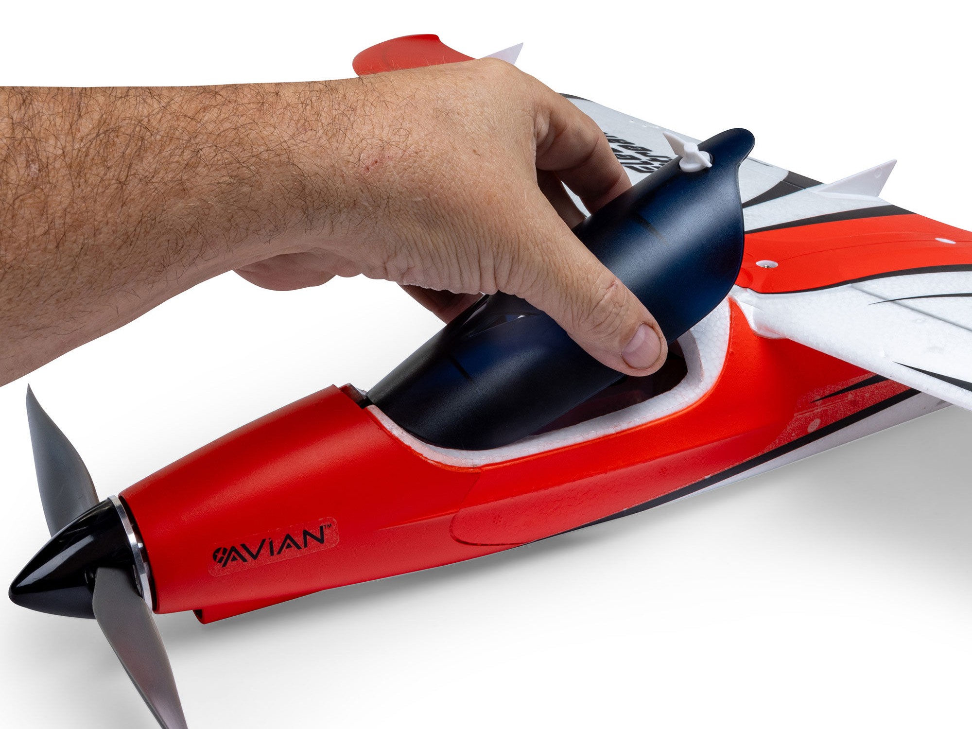 Speed and aerobatic enthusiasts will appreciate the locked-in precision of the four digital, metal-geared servos and ball-link equipped linkages. They make it possible to perform a wide range of sport to high-speed aerobatics, and the optional-use flaperons and spoilerons offer even more capabilities! The sleek airframe is composite reinforced throughout and is moulded in high-density EPO that delivers a strong and stiff airframe. Plus, it’s factory-finished in a vibrant, high-contrast trim scheme for improved visibility and orientation. No glue is required for assembly, and a total of three screws install the stabilizer plus the one-piece wing that attaches and removes easily for convenient storage and transport. That means you can be ready to enjoy a fast-flying experience unlike any other in less time than it takes to charge a battery!