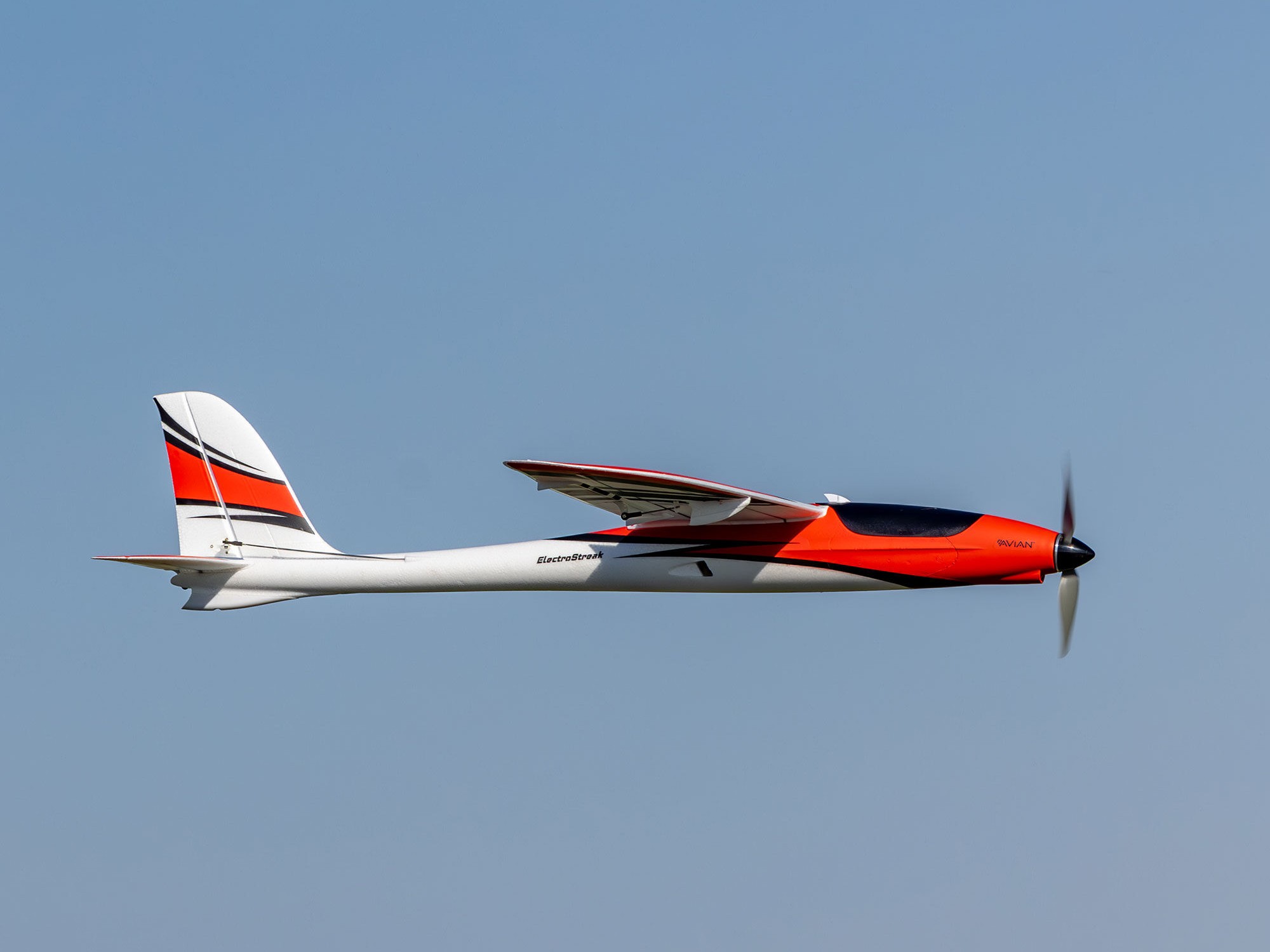 If you have a need for speed the ElectroStreak 1.1m is one of the fastest prop-driven E-flite airplanes ever! With 3S 1800–2200mAh batteries and the factory-installed brushless power system, the ElectroStreak reaches up to 100 MPH in level flight- making it a great choice for intermediate pilots with some high-speed flying experience, especially when utilizing the BNF Basic version’s enhanced AS3X+ and optional-use SAFE Select with automatic Hand Launch Assist Mode technologies. More experienced pilots can unleash level-flight top speeds up to 130 MPH with popular 4S 1800–2200mAh batteries! The Spektrum Avian 45A Smart Lite ESC lets you fly fast with confidence knowing all is well with the power system and battery due to the real-time telemetry data sent via compatible receivers (including the BNF Basic version’s AR631+) to Spektrum AirWare equipped transmitters.