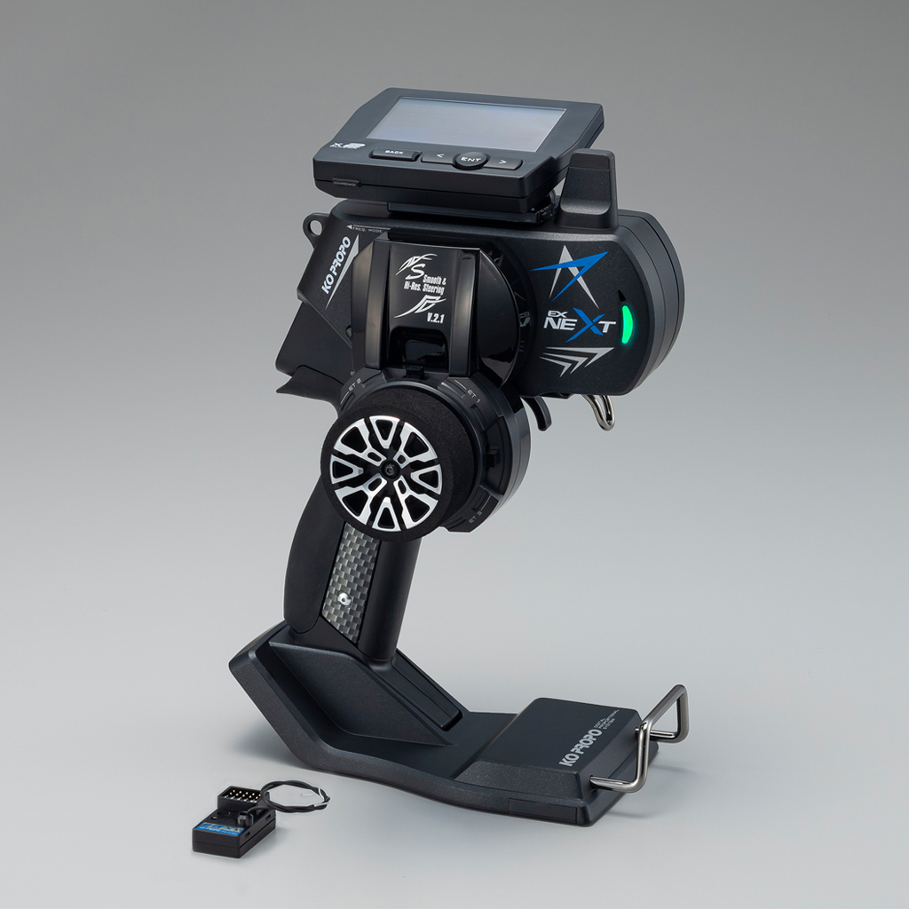 EX-NEXT’s high-speed response is also available for MINI-Z EVO. Mode switching allows switching from general RC car to MINI-Z mode. EX-NEXT is compatible with the “MINI-Z EVO Receiver Unit EX-NEXT MC-8”. *MINI-Z is a product and registered trademark of KYOSHO CORPORATION.