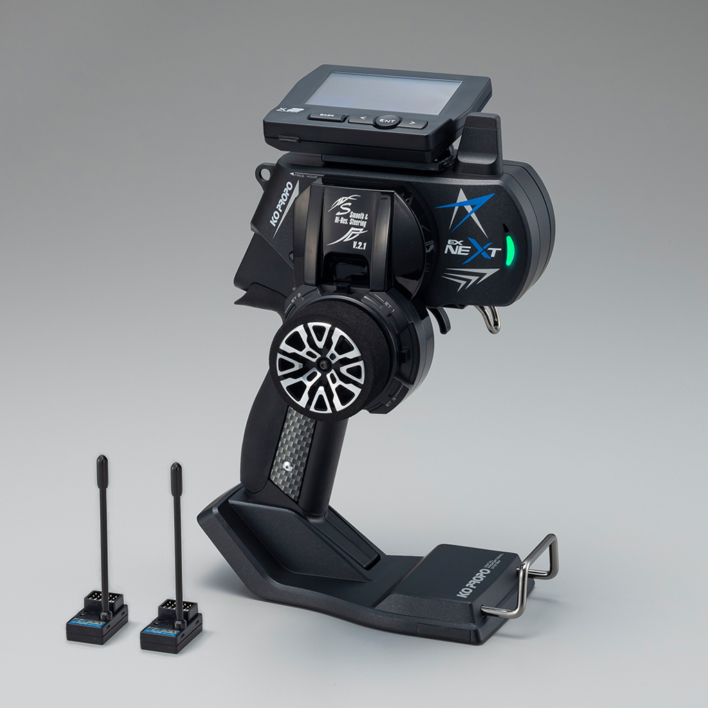 EX-NEXT’s high-speed response is also available for MINI-Z EVO. Mode switching allows switching from general RC car to MINI-Z mode. EX-NEXT is compatible with the “MINI-Z EVO Receiver Unit EX-NEXT MC-8”. *MINI-Z is a product and registered trademark of KYOSHO CORPORATION.