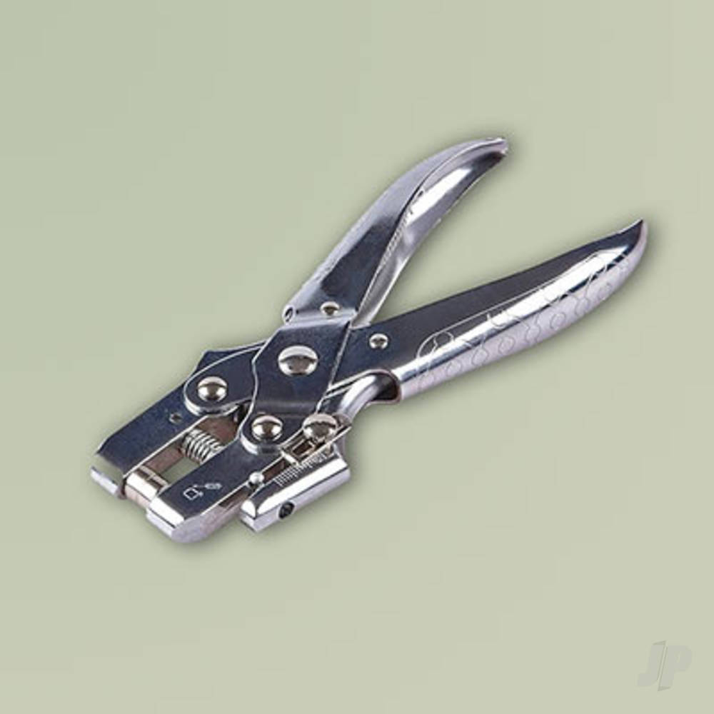 - Heavy-duty chrome plated eyelet plier with an integral punch