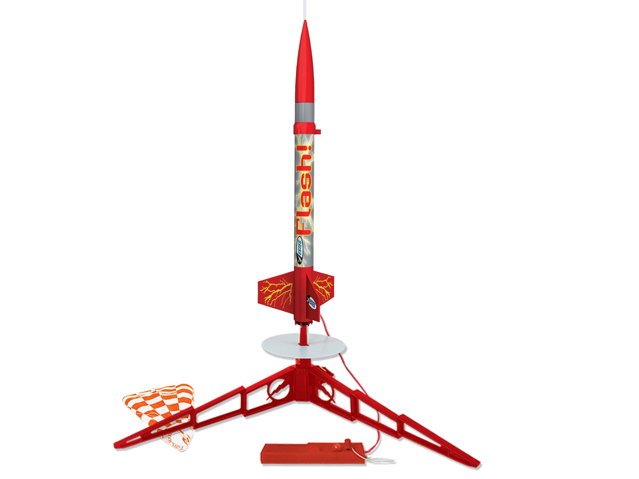 Ease of assembly is just one of the great features of this set, the main feature being a sleek, drag defying design that provides high performance, cloud punching flights up to 925 feet on Estes standard rocket motors. Each Flash Launch Set comes complete with a wicked looking Flash snap together model rocket kit and super reliable Estes Launch System.