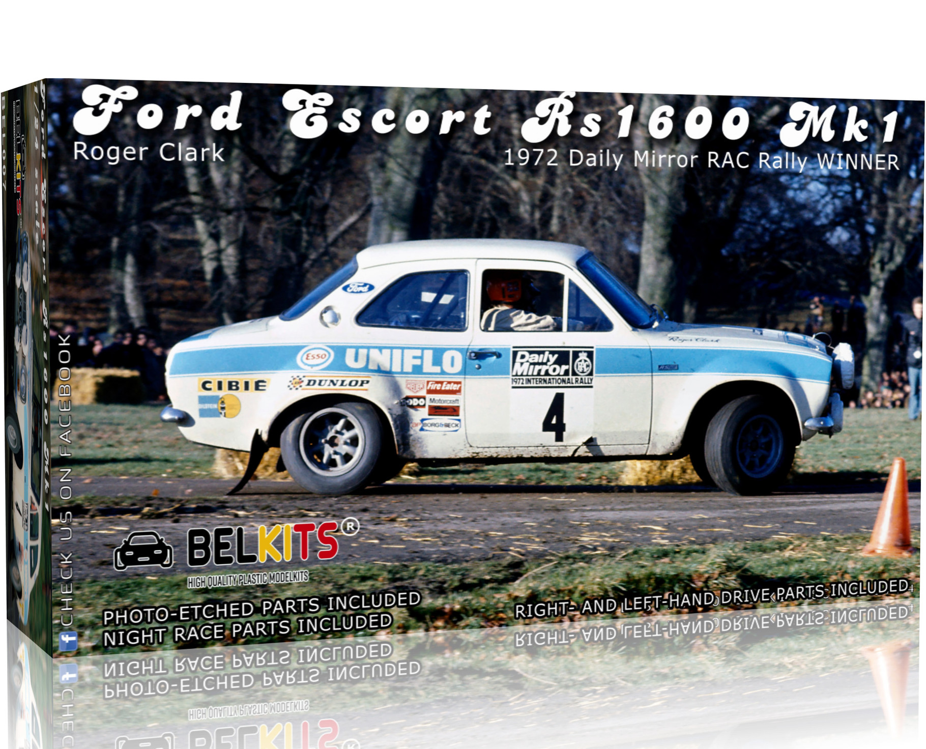 The year is 1972. Roger Clark takes the wheel of the legendary Ford Escort RS1600 MK1 and storms to victory at the RAC Rally! With this defining win, Roger Clark etched his name into rally history. Now, with this seventh kit in the Belkits series, you can recreate that iconic moment in stunning 1/24 scale. From the bold lines to its unmistakable 1970s rally spirit, this kit captures everything that made the Escort a legend. Choose left- or right-hand drive and build your very own RAC Rally winner – a must-have for any rally fan or model builder with a passion for the classics.