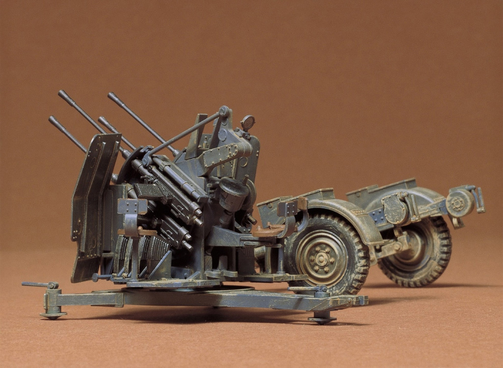 - Choice of assembling the Flakvierling 38 in transport or being fired