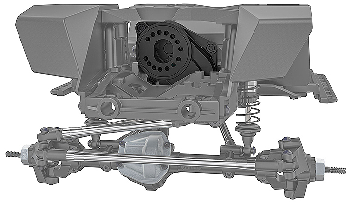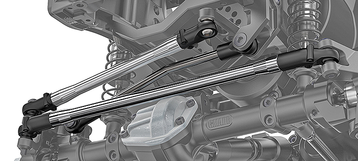 Axles are made of high-strength meterials, and it will look and perform optimum off-road perfermance as real 1:1 vehicle when 4-Link suspensions added.