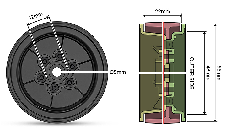 Keeping the scrub radius to a minimum to let your steering servo work at it’s full potential and increases the steering efficiency.
