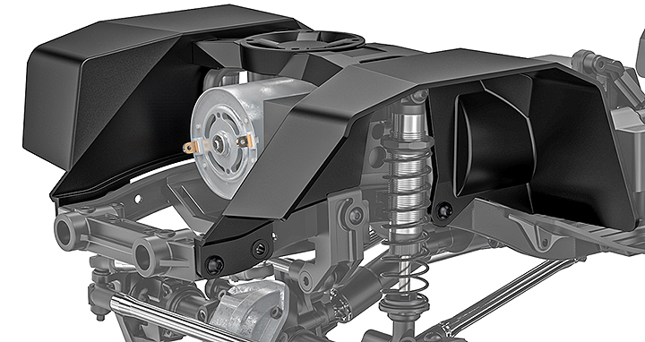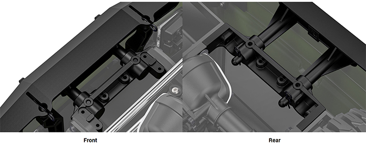 The inner fender is directly fixed to the frame to reduce the flex and bending of the chassis and parts, it also reduces external objects to entering to the chassis during driving.