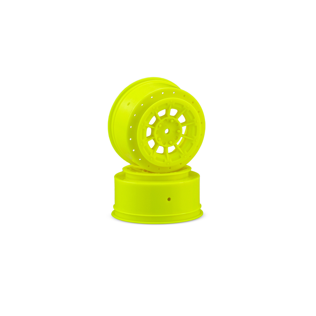 Short Course trucks have evolved into high-performance racing vehicles and dependability and looks are always the key to success. Introducing the Hazard 12mm hex wheel for the Losi SCT-E by JConcepts. A powerful new look that combines the winning combination of a 10 spoke design, bead-lock appearance and center lug nut detail with a hint of inspiration from yesteryear.